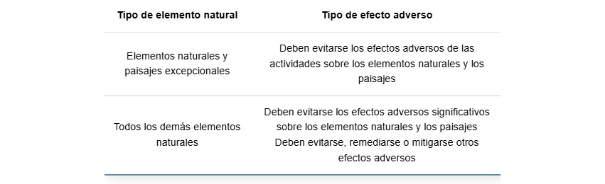 Es decir, en los casos de carácter excepcional, los efectos adversos deben evitarse, mientras que en los demás casos se permiten hasta cierto punto -evitando sólo los significativos-, lo cual es importante para determinar el nivel de protección que alcanza una zona. Esto incluye evaluar el carácter natural del entorno costero de la región y garantizar que las declaraciones de política regional identifiquen las zonas en las que la conservación de los carácteres naturales requiere objetivos, políticas y medidas. Es decir, las autoridades locales deben determinar en primer lugar si se necesita o no protección y, a continuación, adoptar medidas para lograr la protección necesaria.